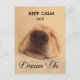 Este cartão-postal apresenta uma fotografia de um cão que recupera o ouro adormecido em close-up. A foto tem um foco suave, qualidade de sonho, junto com o texto "Mantenha calma e sonhe."