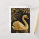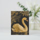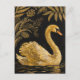 Uma pintura impressionante com um cisne de ouro, altamente texturizado, deslizando sobre um corpo de água escura e refletora. As penas do cisne são fundidas com traços grossos, semelhantes a imundícies, de ouro e tinta esbranquiçada, que lhe conferem uma qualidade luminosa, quase escultural. Está rodeado por um fundo denso, preto-e-cola, do qual emergem folhagem estilizada, abstrato e videiras em ouro misturado. A superfície da água é escura e brilhante, com ondulações sutis ao redor do cisne. O efeito global é um contraste dramático e um simbolismo rico, combinando elementos da natureza com um estilo luxuoso e fantástico.