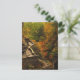 Este cartão-postal de fotografia de arte ilustre e inspirador mostra uma fotografia que foi tirada no Parque Estadual do Treman, em Ithaca, Nova Iorque, durante o pico da folhagem do outono com cores amarela, vermelha, laranja, castanha, ouro e verde. Esta é uma área de beleza selvagem, com um desfiladeiro robusto chamado Enfield Glen como talvez a principal atração. As trilhas de vento seguem as paredes íngremes das rochas, passando por 12 cachoeiras, incluindo a cascata de 115 pés chamada Lucifer Falls, até onde os visitantes podem ver uma milha e meia no desfiladeiro à medida que ela vai para o parque inferior. Estas trilhas incríveis foram construídas na década de 1930 pelo Corpo Civil de Conservação (CCC).