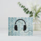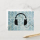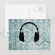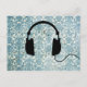 Uma silhueta de fones de ouvido em um fundo azul de damasco de safra.