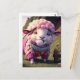 Cartão Postal Ovelha Rosa Engraçada em Goma de Bolha de Mascar