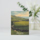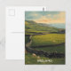 Um cartão postal antigo da Irlanda retrata campos pacíficos com ovelhas pastando, casas encantadoras e um mar cintilante ao fundo, tudo em tons suaves e nostálgicos.