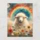 Uma ovelha em um campo de flor silvestre com uma bela arte gerada por IA arco-íris