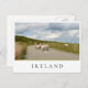 Cartaz fotográfico de algumas ovelhas numa estrada asfaltada no campo da Irlanda, mesmo fora de Dublin, a capital da Irlanda, com o texto "Irlanda" numa caixa branca e com listras em verde, branco e laranja, as cores da bandeira irlandesa.
