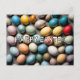 Este cartão postal único apresenta uma variedade de ovos coloridos de Páscoa.