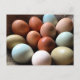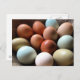 Uma bela coleção de uma dúzia de cheios de ovos de galinha cortados em várias cores e tamanhos colocados por galinhas fazendas de raças diferentes ao ar livre. Branco, creme, biege, café, azul, verde-oliva e até ovos salgados!