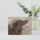 Cartão-postal do perfil Flatlandersam. O meu amigo Sam olha para a minha mulher, à espera que ela atire a bola de tênis para ele persegui-lo.