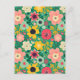 Um padrão floral fofo de flores e folhas coloridas simples, em várias cores, sobre um fundo verde.