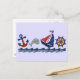 Ilustração gráfica do padrão náutico de veleiro, roda, âncora e baleia na água. Saia com esta design!