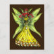Um país das fadas que veste um vestido de sol amarelo com um teste padrão de flor na parte inferior e que guardara um vaso encheu-se com as flores vermelhas.