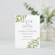 Este elegante cartão de Salvar a Data apresenta delicada folhagem verde em aquarela, enquadrando seus detalhes personalizados para anunciar sua data especial. Projetado por Thisisnotme©