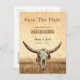 País russo ocidental vintage beige antigo molusco castanho, estilo rodeio. Casamento divertido salve o cartão postal. Convites de crânio de vaca. Usa um pouco de humor com esta design de fazenda engraçada e engraçada. Velho oeste selvagem, único. animal legal, de moda fazenda. Personalize seu script. Imagem copyright Marg Seregelyi Fotografia.