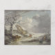Uma paisagem de inverno retrata um campo coberto de neve com árvores áridas e uma casota. Pessoas estão envolvidas em atividades em torno de uma lagoa congelada, enquanto cavalos ficam próximos sob um céu nublado. Artista: George Morland