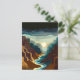 Uma bela paisagem de um canyon com um rio em tons negros de marrom, bronzeado, azul, ciano, ouro e bege.