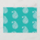 Cartão Postal Paisley azulejo persa - branco em turquesa