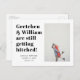 Texto preto simples e ousado sobre vamos branco seus amigos e famílias sabem que você mudou sua data de casamento, fazer que isso mude o cartão postal de uma forma moderna de enviar suas grandes notícias. O texto fácil de personalizar acomoda a data do casamento e o local com texto na parte traseira do URL do seu site de casamento e qualquer informação extra que você queira compartilhar com os convidados.