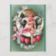 Um belo cartão postal de vintage com uma bela cerebral em uma lua falciosa cercada de flores, pintada pela ilustradora americana Ellen Hattie Clapsaddle.