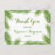 Estas obrigados que você faz são perfeitas para qualquer casal planejando uma festa romântica de casamento na praia. A design apresenta as tendas folhas de palma verde tropical sobre um fundo branco simples e limpo, com uma fronteira e uma redação coordenadas. O design simples pode ser personalizado para se adequar ao seu evento especial e será o obrigado perfeito para qualquer festa temática na praia, incluindo chás de panela, noivados, chás de casamento, festas de aniversário e muito, muito mais.