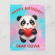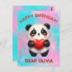 Deseje um Feliz Aniversário com um adorável panda segurando um coração. Todos os textos podem ser facilmente personalizados para atender às suas necessidades.