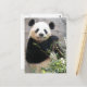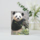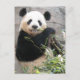Foto maravilhosa da vida selvagem de um Panda relaxando enquanto ele mastiga um caule de bambu.