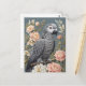 Cartão Postal Papagaio-Cinza Africano Gordo Com Florais Elegante