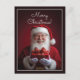 Um design festivo com Papai Noel segurando um presente belamente embrulhado, contra um fundo vermelho vibrante. O texto clássico "Feliz Natal" é exibido com destaque, acrescentando um toque alegre à composição. Esta design captura o espírito quente e alegre do Natal num estilo limpo e atraente.