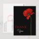 Uma forma elegante de dizer obrigado e expressar seu sentimento personalizado de gratidão. Personalize este design com uma palavra pessoal de agradecimento para fazer as pessoas perceberem que sua gentileza foi apreciada. O design é uma única papoula vermelha em um fundo preto. Obrigado na frente e sua própria mensagem no verso.