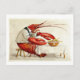 Este cartão-postal é uma reprodução de um cartão vitoriano de colheita que mostra uma lagosta numa jaqueta de smoking que serve a si próprio uma salada.