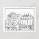 Este belo desenho em linha preta e branca está pronto para ser colorido, para uma forma única de DIY para celebrar um aniversário. Este cartão apresenta a frase "Feliz Aniversário" e uma imagem de bolo e um presente.