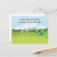 Cartão postal para filho ou filha no acampamento de verão, com uma cena ilustrada de árvores, barracas, crianças brincando, alce, caminhão e flores. Obrigado à Creative Fabrica e à Hungryjpeg por alguns dos elementos do design.