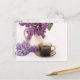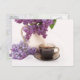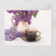Lindas flores lilás e uma xícara de café ou chá para iluminar seu dia! Foto de Larisa Koshkina