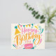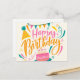 Parceiro de Natal Feliz Festa de Feliz aniversário Celebração da Tipografia do Bolo Feliz Confetti Balões Celebra Caligrafia Letoração Festiva Colorida Saudação