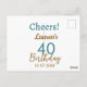Cartão Postal Parabéns 40º aniversário nome data marrom turquesa