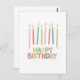 Cartão postal de velas de aniversário Pastel - Envie um brilho de celebração pelo correio! Este delicioso cartão postal apresenta a alegre frase “Feliz Aniversário” cercada por velas pastel suavemente iluminadas - perfeito para espalhar alegria de aniversário perto ou longe. Seja colocado em uma sacola de presente ou enviado com amor através das milhas, é uma maneira doce de dizer “Estou pensando em você!”