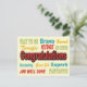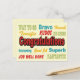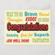 Esta design gráfica retrorcolorida divertida é excelente de enviar suas parabéns para: novo emprego, novo bebê, promoção, graduação, aniversário, casamento, noivado, boas notícias, celebrações, adoção e muito mais.