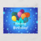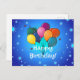 Feliz balões de comemoração de aniversário num fundo festivo cheio de estrelas.