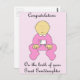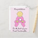 Uma menina vestida de rosa e as palavras "Parabéns sobre o nascimento da sua neta Excelente".