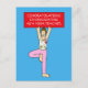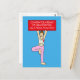 Uma mulher de cartão parada numa pose de ioga, enquanto segurava sobre a cabeça uma placa vermelha que dizia "Parabéns de se formar como professora de ioga".