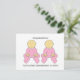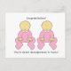 Garotas gêmeas em roupas cor-de-rosa combinando e as palavras "Parabéns em se tornar Excelentes Avós a gêmeos".