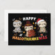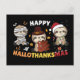 Feliz Hallothanksmas - Feliz Halloween, Ação de Graças e natal. A preguiça está disfarçada de múmia no Halloween. Com um peru para o Dia de Ação de Graças. Adorado com chapéu de Papai noel no Natal.