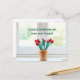 Parabéns pela sua nova casa! Este lindo e simples buquê de flores de tulipa destaca a beleza de um simples parapeito de janela branco nestes belos cartões de inauguração de casa para uma empresa imobiliária ou corretor de imóveis. Empresas de títulos ou oficiais de empréstimo também podem querer enviar essas notas como um agradecimento ao seu cliente ou comprador de casa. Lindos cartões-postais de agradecimento de corretor de imóveis.