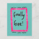 "Finalmente Livre!" Cartão postal de parabéns de divórcio