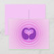 Este design apresenta uma obra de arte em forma de coração rosa e roxo sobre um fundo espiral na frente e cor correspondente complementar no verso. O verso em branco está pronto para o seu bilhete manuscrito.