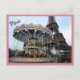 Cartão postal com fotografia de um carrossel e de uma Torre Eiffel parcial e texto "Paris"