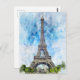 Cartão Postal Paris Eiffel Tower Watercolor #02