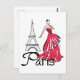 Moda de Paris mostrando modelo desenhado à mão em frente à Torre Eiffel