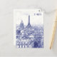 Este viagem, em estilo desenhado à mão, mostra uma vista de Paris com a Torre Eifel.