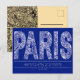 Modern postcard featuring bold “Paris” typography filled with the city map on the front. The back includes a detailed Paris map, writing space, and stamp area on a warm yellow-toned background. A refined travel-inspired design blending typography, cartography, and modern aesthetics.