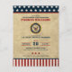 Envie um convite sincero para honrar um recruta indo para o treinamento de Marinhos dos EUA com este cartão-postal maravilhosamente desenhado. Apresentando um tema patriótico e sofisticado, ele dá o tom para uma memorável festa de despedida. Perfeito por celebrar este marco significativo com amigos e familiares.