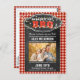 Cartão-postal do Convite de festas do CHURRASCO de Xadrez de Tampão Vermelho dia de os pais. Celebre o "Feliz Dia do Pai" e convide seus amigos e família para o Partido com este cartão-postal fofo. Todos os textos estão pré-organizados para que você personalize fácil e rapidamente com seus próprios detalhes.